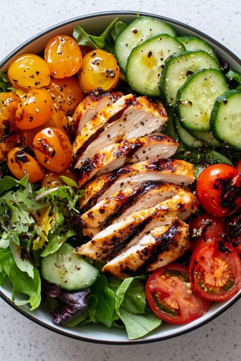 Mix lettuce, cucumbers, and tomatoes with a light vinaigrette for a fresh and simple salad that’s packed with crunch and flavor.