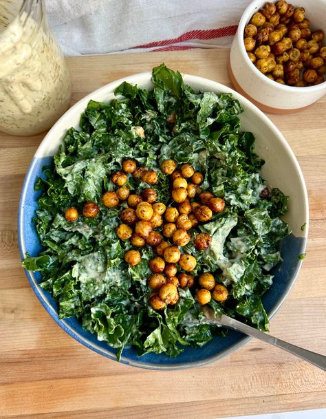 The kale’s earthy flavor pairs perfectly with the crunch of chickpeas, creating a satisfying base for a fresh and vibrant salad.