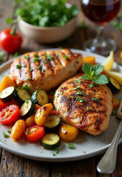 Juicy grilled chicken with leafy greens and a light dressing makes a fresh, satisfying meal. It’s full of protein, fiber, and nutrients to keep cravings away.